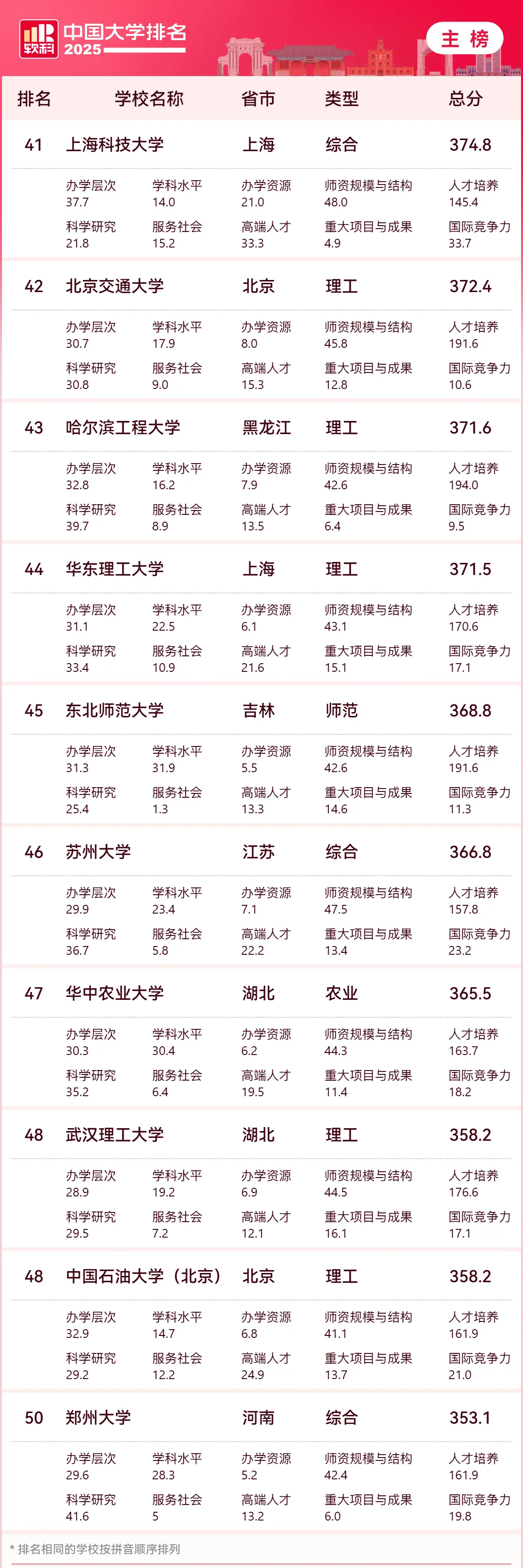 2025年4月15日,高等教育专业评价机构软科正式发布“2025软科中国大学排名”。