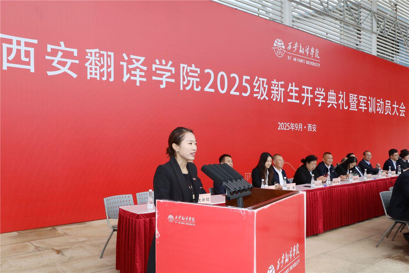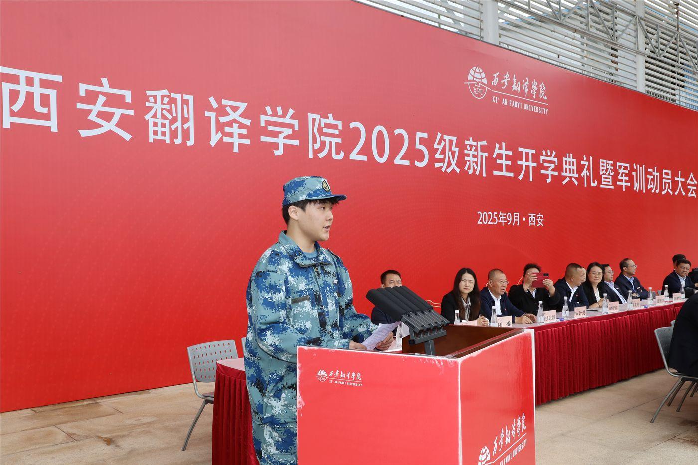 9月19日,西安翻译学院举行2025级新生开学典礼暨军训动员大会。来自五湖四海的学子们怀揣梦想与期待齐聚西译,聆听师长寄语,正式开启大学崭新篇章。校长姚书志,党委书记、政府督导专员栾宏,空军工程大学汤煜大校,全体校领导以及军训旅全体教官出席大会。各二级学院主要领导,相关职能处室负责人、新生辅导员和全体参训新生参加。副校长武忠远主持开学典礼。