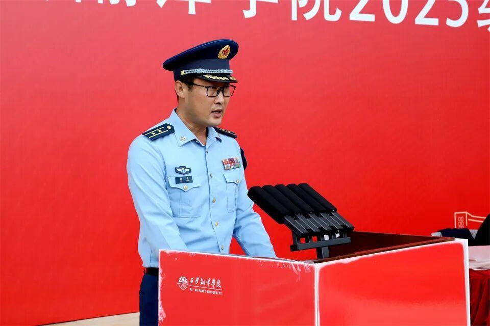 军训旅副旅长、空军工程大学魏亮中校宣布军训实施计划。