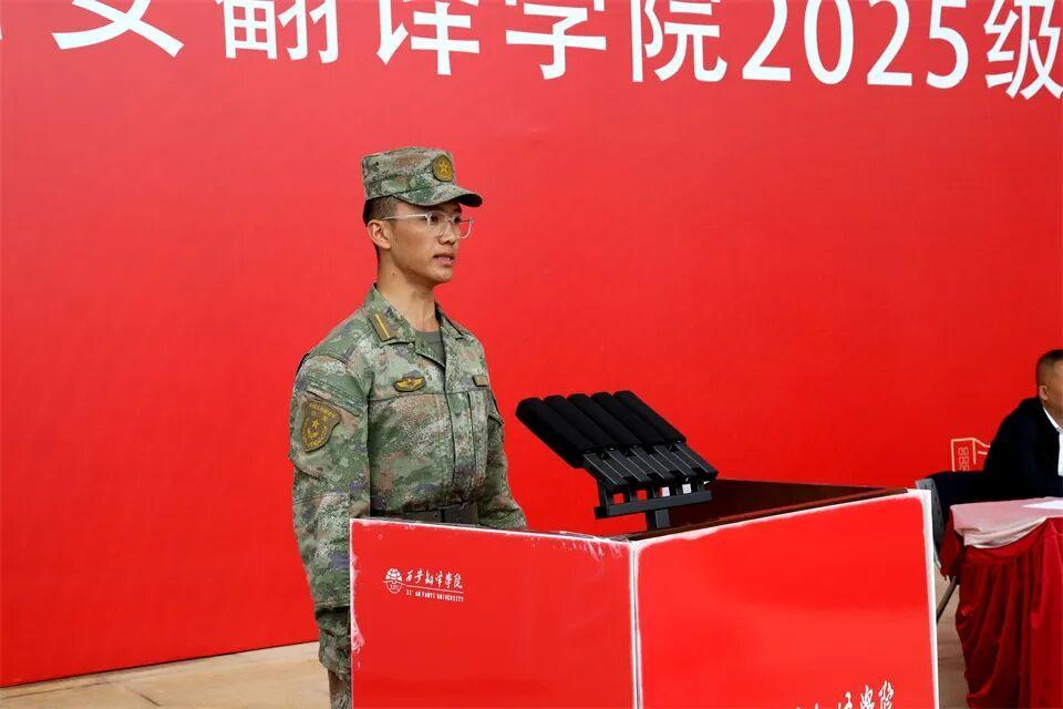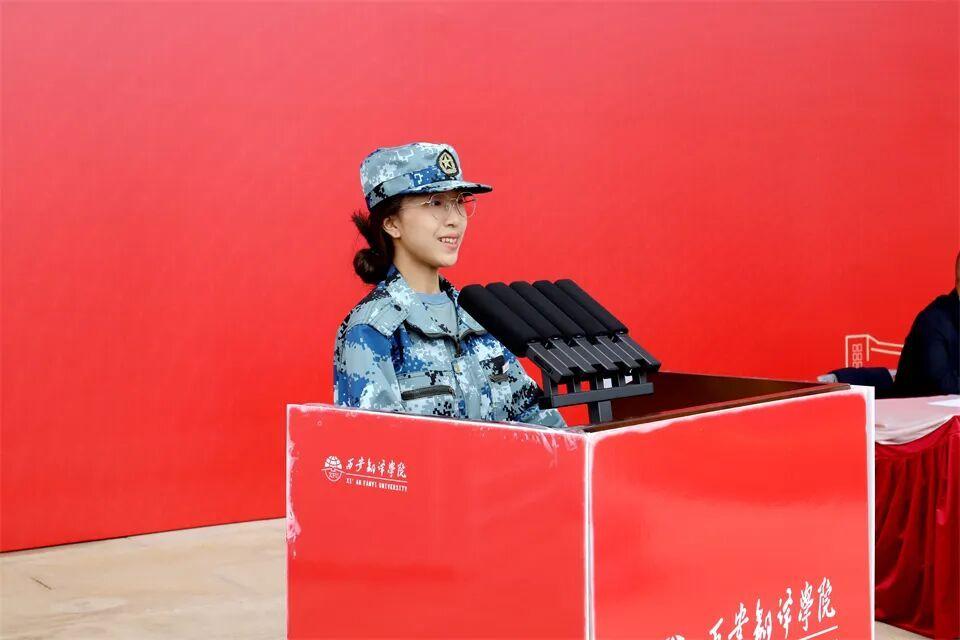 参训学生代表、国际商学院尤欢鑫在发言中表示,将以军训为起点,传承和发扬西译人“勤奋、拼搏、进取”的精神,在未来的学习生活中保持积极向上的态度,努力学习专业知识,全面提升自身素质,争取成为一名优秀的西译人。