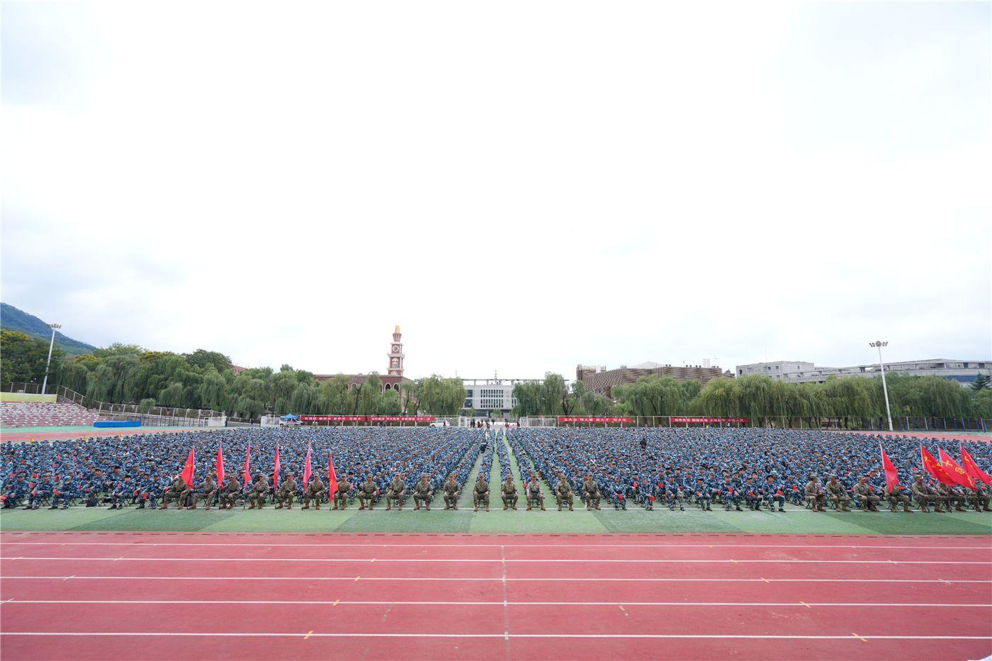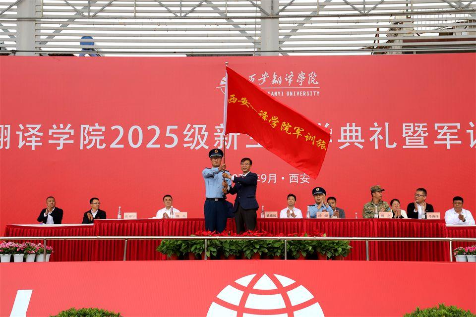 空军工程大学汤煜大校在讲话中表示,西安翻译学院办学特色鲜明、人才培养成效显著。空军工程大学作为承训院校承载着西译的信任与期盼,更担负着厚重的荣誉和责任。相信在两校共同努力下,一定能够圆满完成本次军训任务。军训旅旅长、副校长武忠远向军训旅授军旗。大会在《团结就是力量》的激昂歌声中胜利闭幕。